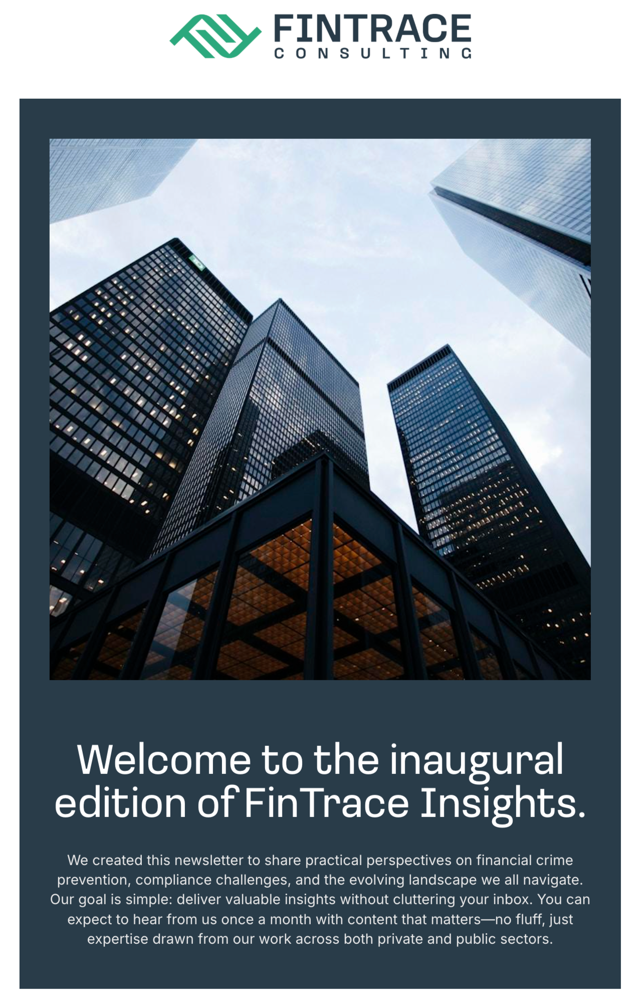 Stay informed with our monthly insights into financial crime, compliance trends, and investigative best practices. This archive includes every edition of the FinTrace newsletter—your resource for practical guidance, industry updates, and thought leadership designed to strengthen programs across both the public and private sectors.